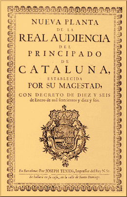 • L’ocupació del territori català arran de la desfeta en la guerra de successió, va tenir conseqüències importants, com la publicació del Decret de Nova Planta (1716), que suprimia les institucions i constitucions tradicionals de Catalunya (Generalitat, Corts, Consell de Cent…), hi imposava les lleis i el sistema administratiu de Castella i fixava el castellà com a idioma oficial.
