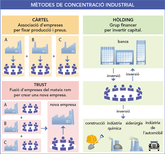– Els seus exemples van ser el càrtel, el trust, el hòlding i el monopoli.