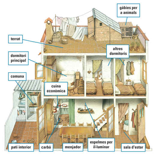 • En conseqüència, les seves condicions de vida i de treball resultaven molt dures: jornada laboral de 12 a 14 hores diàries i remuneracions insuficients, que obligaven a treballar dones i nens.