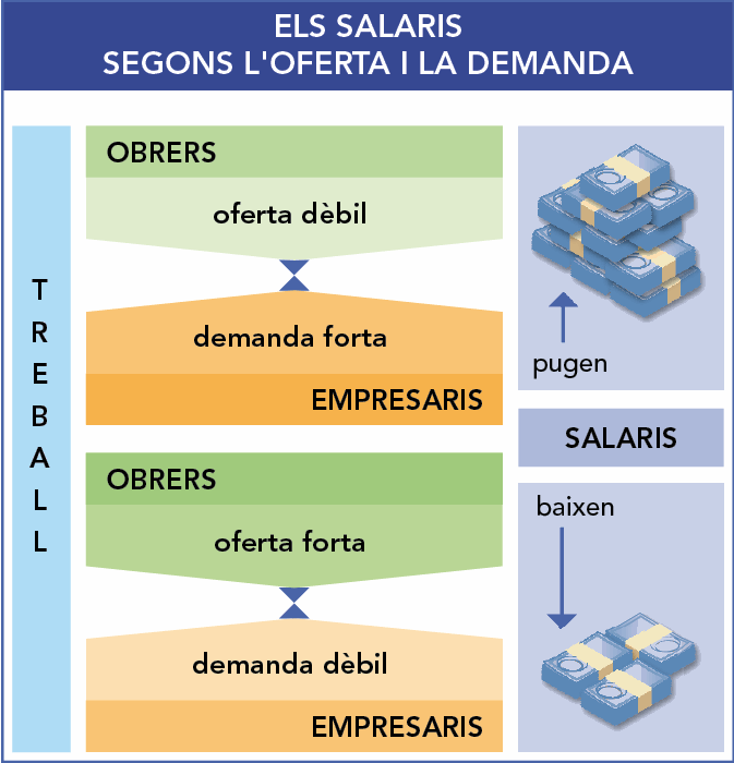 – El mercat s’equilibra en funció de la relació entre l’oferta i la demanda. Els diversos interessos s’equilibren al mercat gràcies al mecanisme dels preus que adapta l’oferta a la demanda.