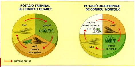 – Es van introduir noves tècniques de cultiu (substitució del guaret i progressiva mecanització), així com nous cultius.