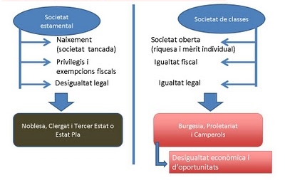 • La industrialització va organitzar la societat en classes socials: la burgesia i el proletariat. Les seves diferències radicaven essencialment en la riquesa.