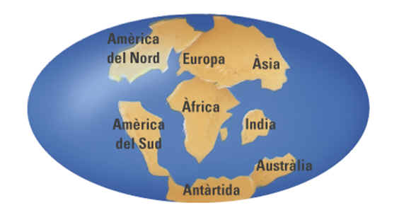 • El moviment de rotació de la Terra va trencar aquest únic continent i va donar lloc a les anomenades plaques tectòniques.