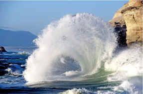 • L’acció de l’aigua, sobretot de les onades i de les marees, modela les costes, desgastant penya-segats i provocant-ne el retrocés.