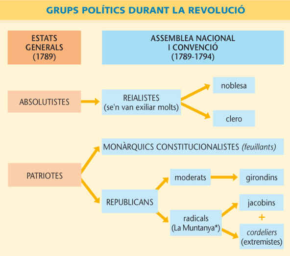 – 1.- La monarquia constitucional (1789-1792). Tenia el suport de la burgesia conservadora, que aspirava a arribar a un acord amb el rei i els privilegiats per abolir l’Antic Règim.
