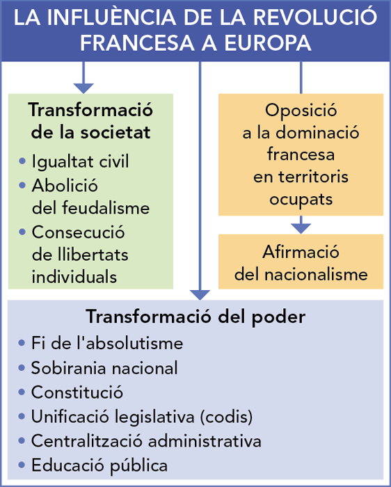 • Tot això va desencadenar als territoris ocupats sentiments nacionals contra la França invasora. Les noves idees liberals van ser utilitzades als països ocupats per lluitar precisament contra la presència francesa.