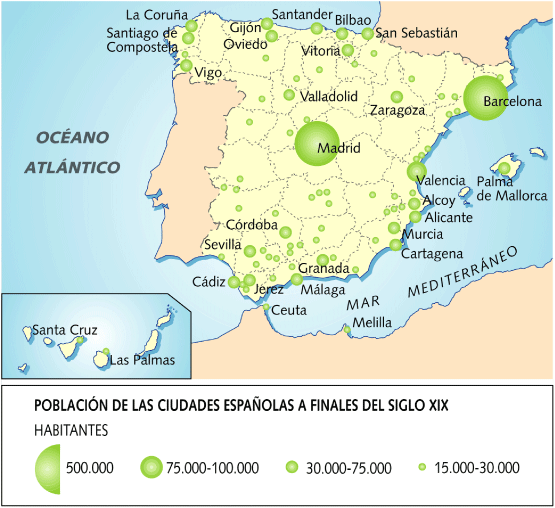 • Entre 1850 i 1900, Espanya va duplicar el seu nivell de població urbana.