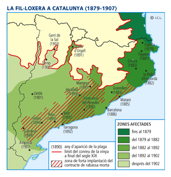 • Aquesta especialització vitícola va anar en augment, sobretot gràcies a que els vins catalans van substituir els europeus per l’arribada de la fil·loxera a França.