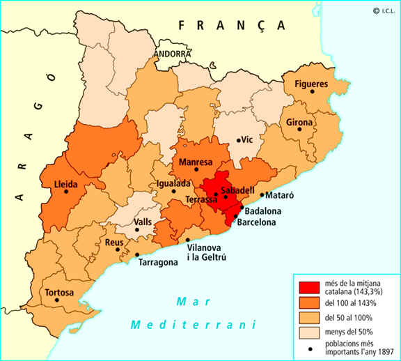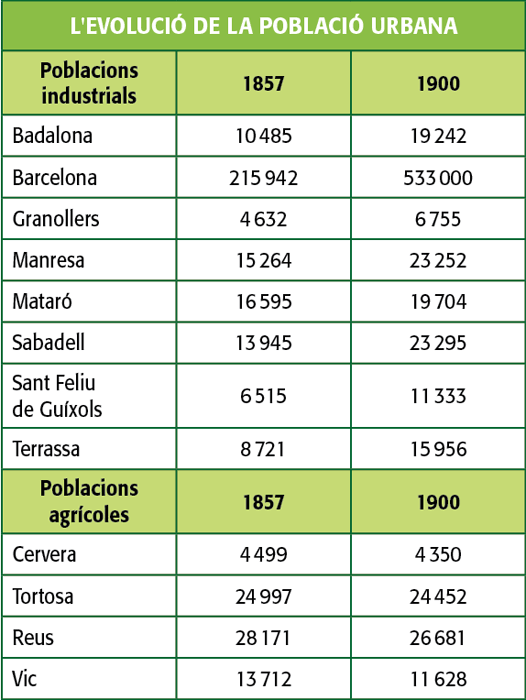 • A Catalunya, el creixement de les ciutats va ser més intens i al final del segle XIX la població urbana significava un 43% del total.