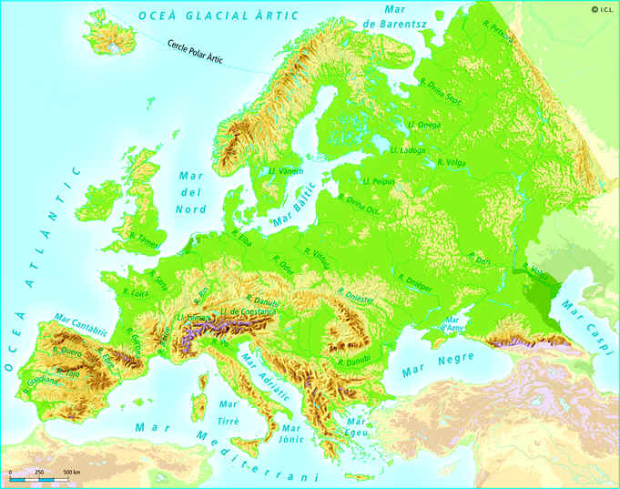 • Europa és un continent força petit, ocupa 5000 km d’est a oest i 4000 km de nord a sud.