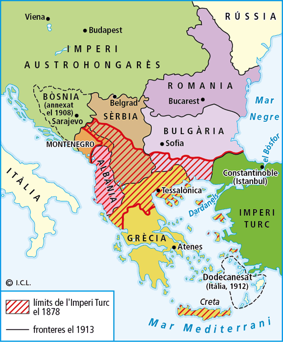 – El conflicte dels Balcans: hi van intervenir elements com la descomposició de l’Imperi turc, el sorgiment de nacionalitats i els interessos d’Àustria-Hongria i Rússia a la regió.