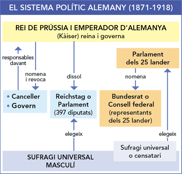 • L’Imperi alemany era un règim constitucional, però el kàiser exercia el poder de forma autoritària.