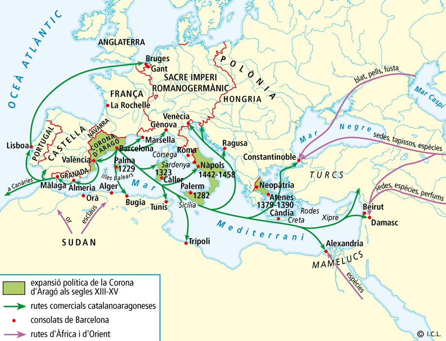 • Aquests van proporcionar naus i diners als reis perquè volien establir rutes comercials segures amb Itàlia, amb els regnes musulmans del nord d’Àfrica i amb l’Orient Pròxim.