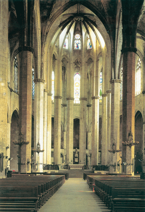 • L’arquitectura gòtica catalanoaragonesa es caracteritza per l’ús de pilars i torres octagonals, i l’existència d’espais interiors amplis i unitaris, amb una sola nau o tres naus de la mateixa alçada.