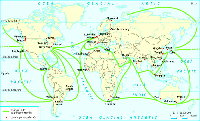 • El comerç mou quantitats enormes de productes molt diferents i utilitza mitjans de transport de gran capacitat i eficàcia a preus raonables.