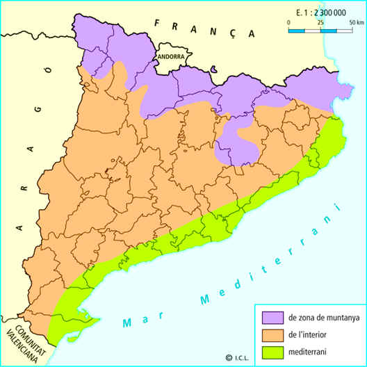 • El paisatge agrari mediterrani es dóna a la franja costanera de Catalunya. De nord a sud s’hi poden distingir quatre zones diferents d’espais agraris: