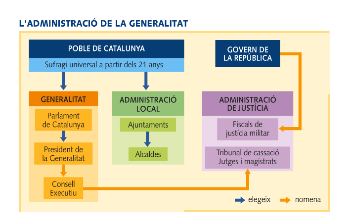 – Les institucions bàsiques de la Catalunya autònoma eren el Parlament, el Consell Executiu o govern de la Generalitat i el President.