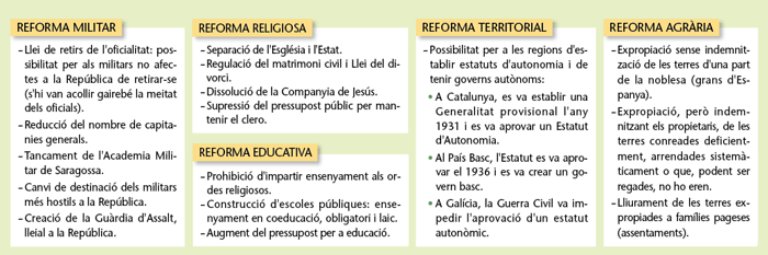 • Els governs republicans van emprendre un programa de reformes que va trobar l’oposició dels grups socials més conservadors.