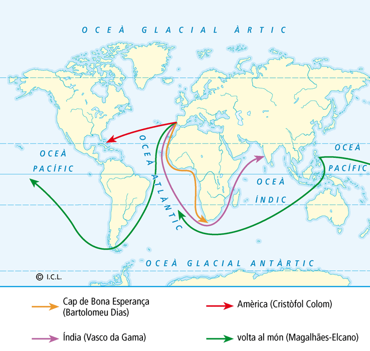• En un període de temps breu, s’arribà al continent americà i es donà la primera volta al món.