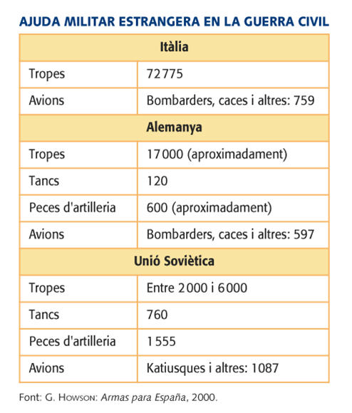 – El sector sublevat va rebre el suport d’Alemanya i Itàlia i, en menor mesura, també de Portugal.