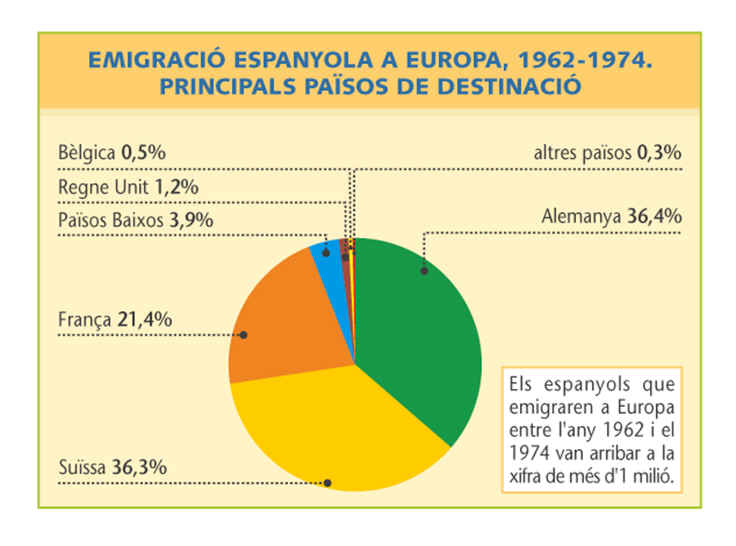 • En aquell moment es va desencadenar un procés d’emigració massiva del camp cap a les ciutats industrials. La intensitat d’aquests fluxos migratoris es va mantenir fins a la crisi econòmica de 1973.