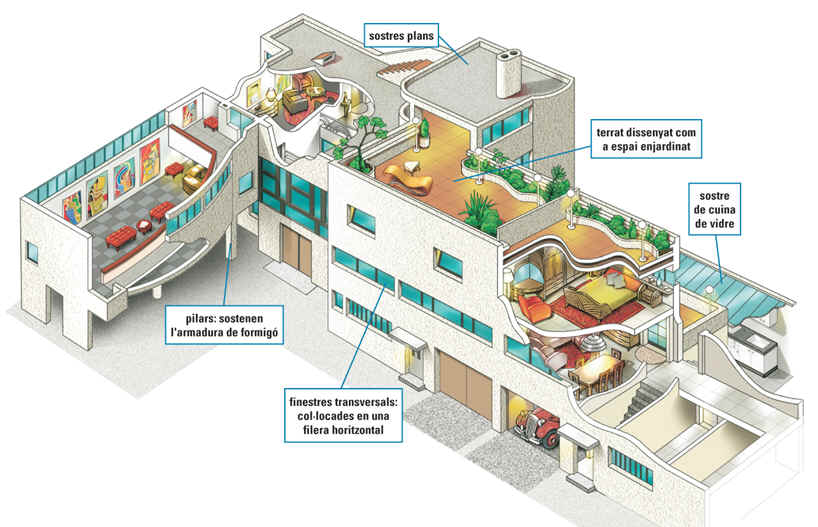– El desenvolupament d’aquesta nova arquitectura va estar unit a autors com Le Corbusier o l’escola de la Bauhaus, fundada a Alemanya, que va tenir en Mies Van der Rohe un dels seus membres més destacats.
