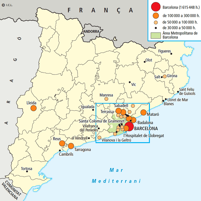 • El sistema urbà català està dominat per Barcelona i la seva àrea metropolitana: