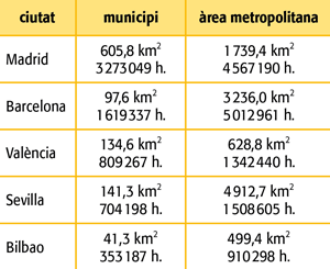 – Àrea metropolitana: agrupa una gran ciutat i la zona urbana que l’envolta.
