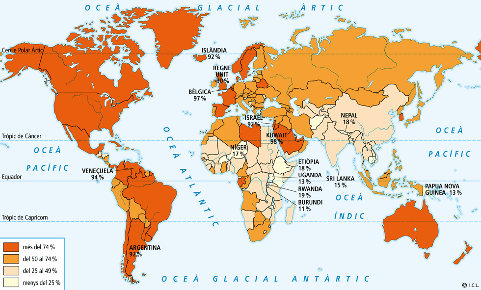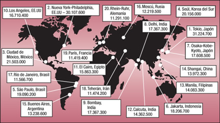 • Les ciutats dels països en vies de desenvolupament són enormes i molt denses, creixen de forma desordenada, tenen dèficit d’infraestructures i equipaments i presenten importants desequilibris socials entre els seus residents. A més, hi ha una gran diferència entre les ciutats d’un mateix país, que solen estar també mal comunicades entre elles.