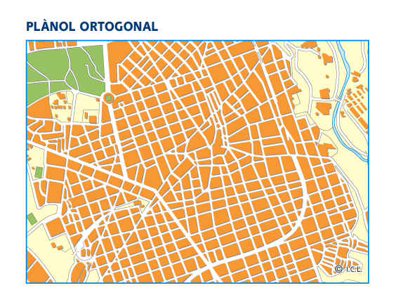 – El pla ortogonal o reticular. El traçat dels carrers es talla perpendicularment, creant una forma de quadrícula.