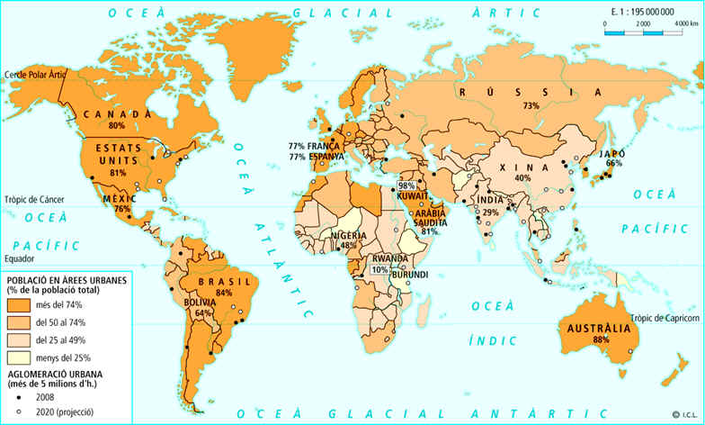 • Avui en dia, les ciutats de tot el món creixen sense parar i el procés d’urbanització s’accelera. Això es deu a l’èxode rural i a que la ciutat actua com a centre d’atracció.