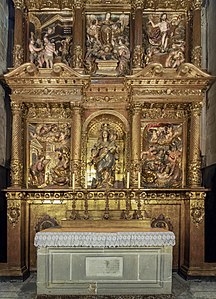 • En escultura són molt representatius els retaules que ornamenten moltes esglésies del Principat, com ara la d’Arenys de Mar.
