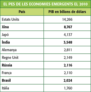 • Però a les darreres dècades han emergit unes altres economies que ja tenen un paper important en el segle XXI. Són el Brasil, Rússia, l’Índia i la Xina (països BRIC).