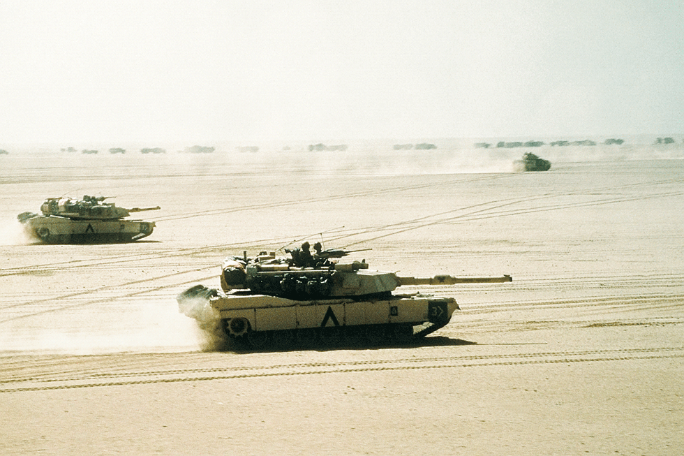 • El 1990 van alliberar Kuwait de la invasió de l’Iraq en la Guerra del Golf. Van continuar les intervencions a Somàlia, Haití i el Sudan, que també foren consensuades per la comunitat internacional. L’esclat de la Guerra del Golf va ser un punt decisiu en la definició del nou paper dels Estats Units.